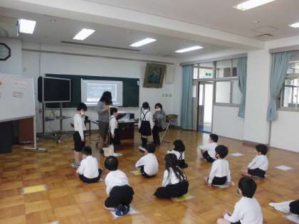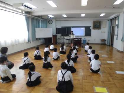1年生が小学校ではじめての身体測定です。はじめに保健室の先生から保健室の利用の仕方や手あらいの仕方について教えてもらいました。身長の測り方や体重計の乗り方など、一つ一つ細かく教えてもらいました。とても静かに聞いていて、返事もしっかりとできていました。小学校6年間でどれくらい大きくなるのかな。今から楽しみですね。
