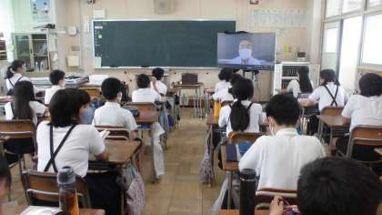通常授業に戻って2週間がたち学校生活にも慣れてきました。今一度、「夢や希望」を持てるように、自分の興味があるものや好きなものにし、積極的にチャレンジし日々の授業の中で「学び」に励むことの大切さについて、校長先生からお話してくださいました。