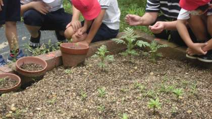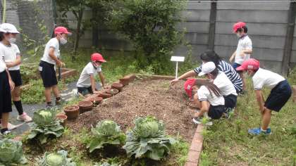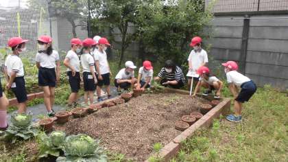 子どもたちは自分たちが植えたたねが大きく育ってきたことを喜んでいました。