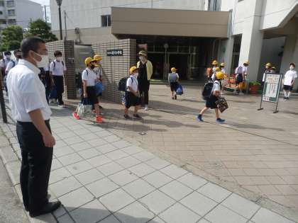 今日からあいさつ強調週間です。代表委員のみなさんが朝正門に立って、元気な挨拶で呼びかけます。