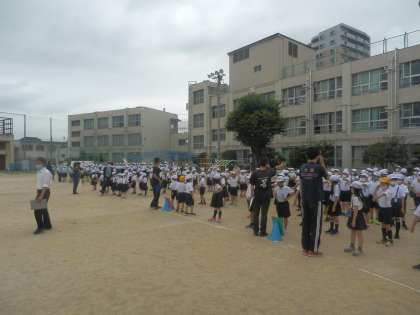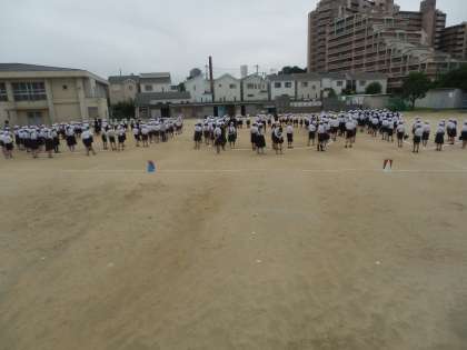 今日初めて、全校児童と教職員で創立100周年の「100」の人文字を作りました。離れたところから、ドローンを使っての撮影です。みんなできれいな「100」を作ることができました。本番は、7月5日(月)の10時です。晴れますように!!
