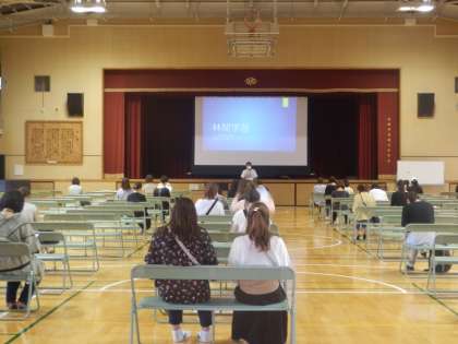 本日午後4時より、講堂におきまして夏休みに計画しております林間学習の保護者説明会を実施いたしました。お足元の悪い中、また暑い中多数ご出席いただきました。本当にありがとうございました。