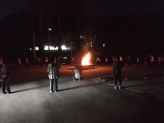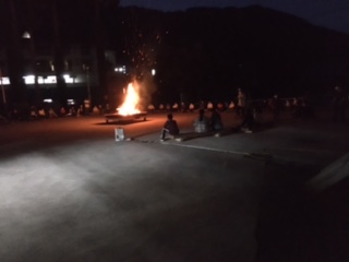 6年生が玄関前広場でキャンプファイヤーを行いました。