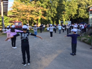 今日も朝から快晴です。朝の会で今日一日の活動の確認をしました。その後、ラジオ体操を元気に行いました。