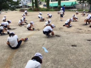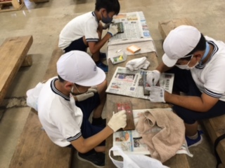 5年生は焼き板作りです。林間学習の思い出を一生懸命焼き板に描いていました。
