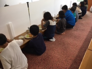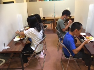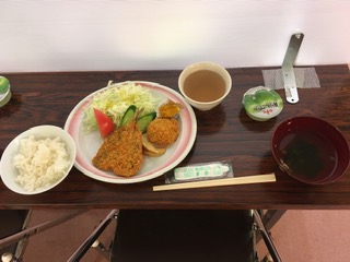 夕食はフライ定食です。今日一日の活動で、お腹すいたの声が聞こえていました。