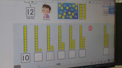 1年生が算数の授業で「10と○でいくつ」という学習をしていました。