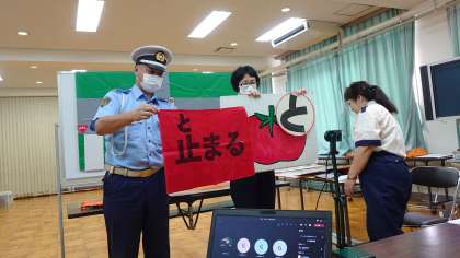 Teamsを使って、交通安全指導を行いました。1・2年生は、正しい歩行の仕方。3年から6年生までは、正しい自転車の乗り方の学習でした。たくさんのパネルやクイズを出してくださり、リモートでしたがわかりやすく交通安全について学ぶことができました。