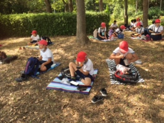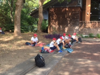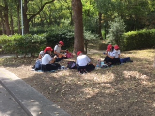 待ちに待ったお弁当の時間です。皆んな美味しくいただいています。距離をとっての黙食です。