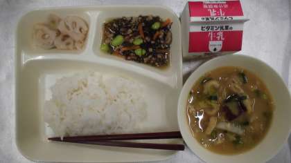 今日の給食のメニューはもずくと豚ひき肉のジューシー、さつまいものみそ汁、焼きれんこん、牛乳、ごはん、でした。もずくと豚ひき肉のジューシーは沖縄の伝統的な料理です。琉球料理とも呼ばれています。豚肉やとうふ、昆布などの海そう、野菜を使った料理が多く、栄養バランスにすぐれています。ジューシーとは、豚肉やひじきなどを使った「沖縄風炊き込みご飯」のことです。給食では炊き込みご飯ではありませんでしたが、美味でおいしかったです。さつまいものみそ汁はさつまいもの自然な甘さを感じ、焼きれんこんはシャキシャキとした食感が楽しめました。