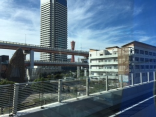 バスが予定通り出発し、舞子公園 橋の科学館に向かって走っています。