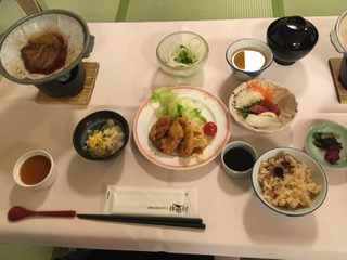 夕食の時間です。とても豪華なメニューです。明日に備えてしっかり食べましょう。