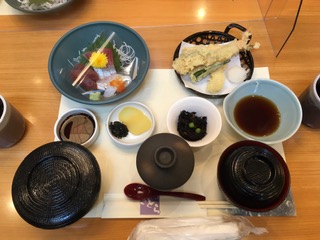 夢舞台にある海鮮料理きとらで、最後の食事です。とても豪華な料理が並んでいます。