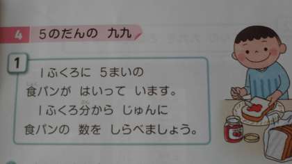 1ふくろに5まいの食パンがはいっています。1ふくろ分からじゅんに食パンの数をしらべましょう。