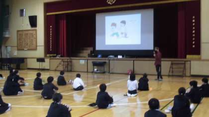 今日は5年生の子どもたちに出前授業を行いました。