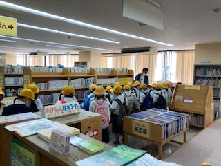 2年生の子どもたちが北図書館に社会見学に来ています。学校の図書室よりも大きいね。学校で見たことある本を見つけたよ。大人が読む本もいっぱいあるよ。働いてる人たちの様子は?利用している人の様子は?本の並べ方はどうなってるのかな?このパソコンは何に使うのかな?調べたり聞いたりしたことをメモしていきます。あーこの本読みたいな。