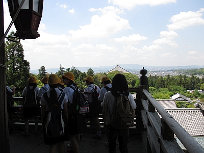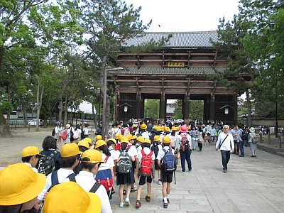 6年生が春の遠足で、奈良・東大寺に行きました。JRと近鉄電車を乗り継ぎ、奈良へ。好天に恵まれ、多くの観光客が訪れていました。東大寺大仏殿→二月堂→飛火野でお弁当を食べました。