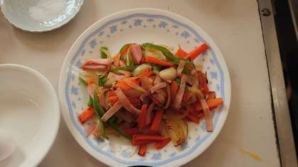 今日は、「炒める」学習で、いろどりいためとスクランブルエッグを作りました。