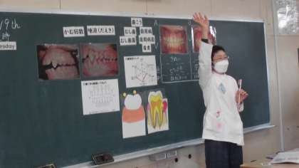ゲストティーチャーとして歯科衛生士の方に来ていただきました。6年生の子どもたちに歯と口の健康教室を行いました。動物園のサルの歯と野生のサルの歯の写真を見比べて、違いを観察しました。あまりにもの違いに子どもたちも驚いてました。そのあとプリントを使って歯と口の健康についてチェックしていきました。歯垢、むし歯、歯周病などについてもていねいに教えてもらいました。さあ自分の歯や口はどうだったでしょうか。歯は大切です。いつまでもきれいに保てるよう努めていきたいですね。