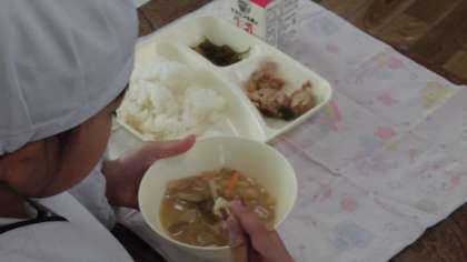 今日の給食のメニューは、まぐろの甘辛焼き、豚汁、茎わかめの佃煮、牛乳、ごはん、でした。まぐろの甘辛焼きはサイコロ型のまぐろにしょうゆベースの和風仕立てで下味がつけられていて、白ネギの風味がアクセントになっていました。ごはんとの相性もばっちりでした。豚汁は豚肉の脂の旨みが広がり、細かくていねいに刻まれた野菜がたくさん入っていて具だくさんでした。ごぼうがおいしかったです。茎わかめはコリコリとした食感が楽しめました。