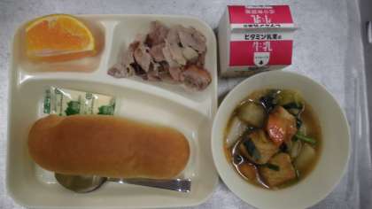 今日の給食のメニューは、豚肉のオイスターソース焼き、厚揚げと大根の中華煮、デコポン、牛乳、パン、でした。豚肉のオイスターソース焼きは生姜汁とにんにく、オイスターソースで下味がつけられた豚肉が香ばしく焼き上げられていました。厚揚げと大根の中華煮はとろみがついていて温かく、具材に味がしっかりとしみ込んでいておいしかったです。デコポンは果汁がたっぷりで自然の甘さが感じられました。