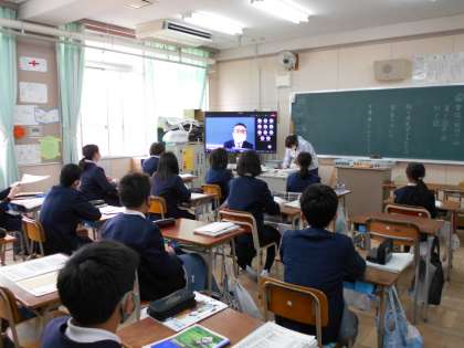 子どもたちも画面を通して、校長先生のお話をしっかりと聞いていました。