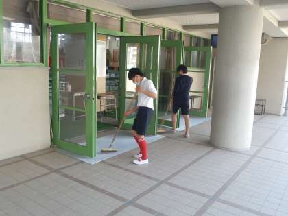 明日の入学式が無事に行えるように、一つ一つの椅子をきれいにふいたり、学校中の掃き掃除をしたりしてくれました。頼もしい6年生です。