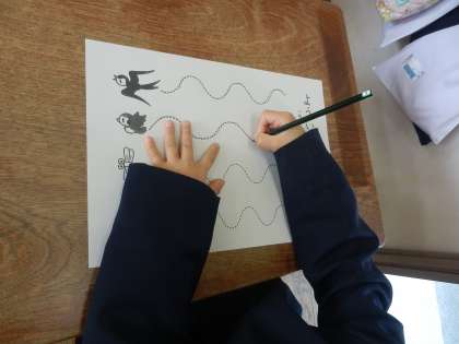 1年生の教室をのぞきに行くと、鉛筆の持ち方や書き方の練習をしていました。