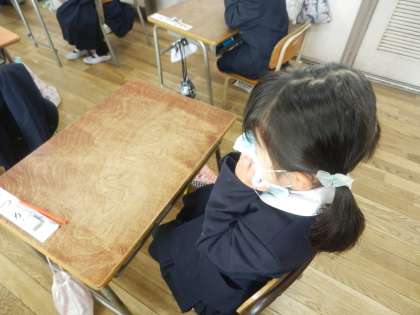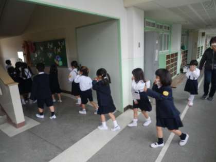 本日火災による避難訓練を実施しました。火災が起きた際、ハンカチ等で口を押えることや、先生の指示をしっかり聞くこと、また各学年で避難経路の確認も行いました。
