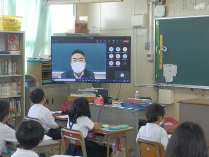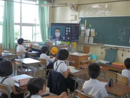 淀川小学校では、毎週水曜日に「あいさつデー」があり、あいさつミッションが出されます。今週のミッションは、「友だち10人にあいさつをしよう」です。今日の児童朝会では、校長先生から「あいさつの大切さ」についてお話していただきました。