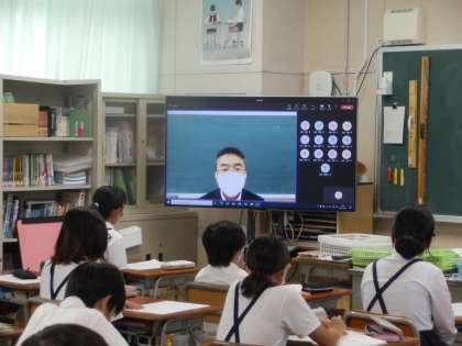 挨拶は、「明るく、いつも、先に、続けて」挨拶してください。自分の周りや人を幸せにする一番簡単なとても大切な方法です。とお話していただきました。みなさんも声を出して挨拶できていますか。これからも挨拶に心がけてください。