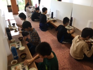 朝食の時間です。今日は登山をはじめ、沢山の活動が予定されているので、しっかりエネルギーを蓄えましょう。