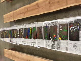 焼き板では、色とりどりの絵の具を使って、林間学習の思い出を描いていました。