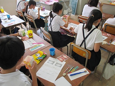 歯科衛生士の方に来ていただき、6年生に、「歯と口の健康教室」を開いていただきました。なぜ虫歯になるのかや正しい歯のみがき方などを資料を見ながら学習した後、歯のみがき残しがないかを赤い色で染め出し、ていねいにみがく練習をしました。