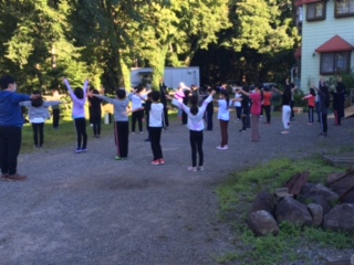 林間学習3日目です。今日は朝から雲一つない快晴です。体調を崩している児童もなく、朝の会では全員でラジオ体操を行いました。家に帰るまで油断しないで行動し、思い出に残る林間学習にしましょう!