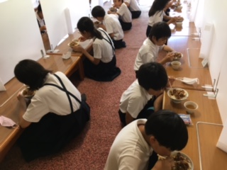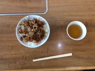 昼食の時間です。グリーンロッジで最後の食事となりました。メニューは牛丼です。