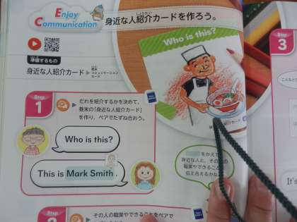 5年生では、身近な人を英語で紹介する学習をしていました。