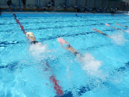 絶好のプール日和です。5年生の子どもたちも気持ちよさそうに