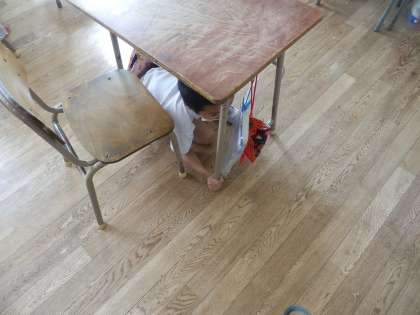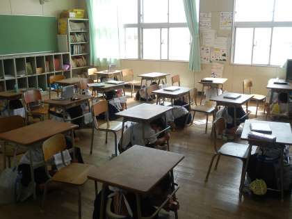給食後の1時30分から全校で大阪880万人訓練に取り組みました。地震がきたことを想定して、自分の体を守る行動を取ることができました。みんな真剣に訓練に臨むことができました。
