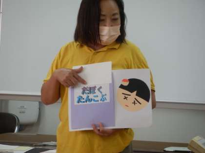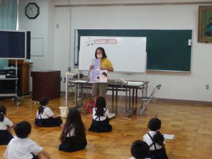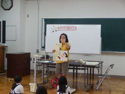 1年生の発育測定の前に、保健室の園田先生から、学校でおこるケガとその対処法について教えてもらいました。1年生は真剣な表情で話を聞いていました。