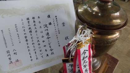 2学期が始まって3週間ほどが経ちました。始業式に校長先生から気候のいい季節なのでいろいろなことにチャレンジしてほしいとお話がありました。 今日の児童朝会では、先日行われた都島区スポーツ大会子ども会キックベースボールの部で優勝した子どもたちに、校長先生から賞状とトロフィーと優勝旗が送られました。