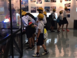 修学旅行最後の活動場所の舞子公園に到着しました。橋の科学館では明石海峡大橋をはじめとする本州、四国連絡橋に使われた架橋技術を学びました。