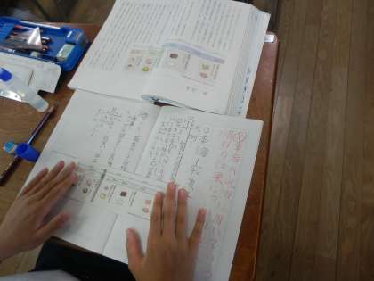 5年生の教室では、国語科「和の文化を受けつぐ」の学習をしていました。年表をもとに、いろいろなお菓子が日本に伝わってきた時代のことをまとめることができました。