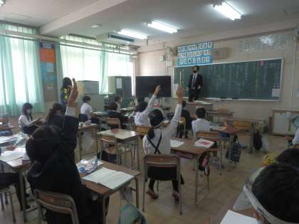 4年生の国語科では、「つなぐ言葉の働き」の学習を行いました。「だから」「しかし」等の接続語を用いて、文章の続きを考える授業でした。自分の考えた文章をペアになってお互いに発表し合いました。朝の1分間スピーチや文章を書く際に、今日習った接続語をどんどん使ってほしいです。