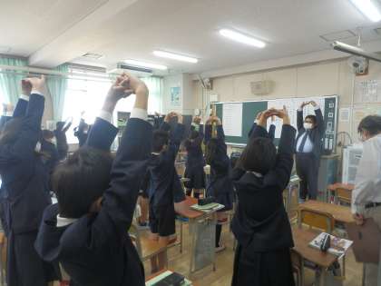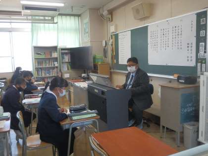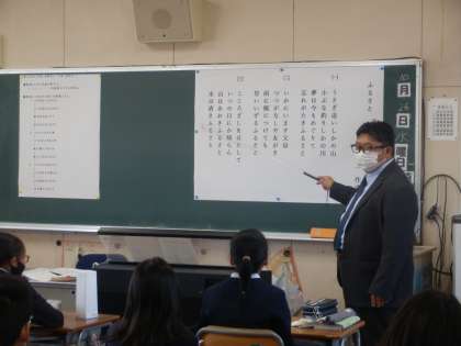 言語能力向上を目指した取り組みで6年生の音楽科の授業が行われました。♪ふるさと の歌詞に込められた思いを想像し、実際の言葉の意味の相違を確かめました。また、音楽記号(強弱 息のコントロール等)に注意しながら歌うことができました。