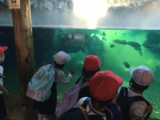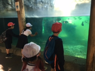 園内の見学が始まりました。大きなカバが泳いでいます。