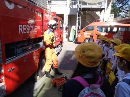 レスキュー隊のお仕事について教えてもらっています。