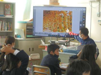 太陽の学習を行った後、私たちは日光の光をどのように使って生活をしているのかの学習を行いました。中でも干し柿はそのまま食べるととても渋い柿を、日光で乾かすことで渋みがなくなり甘くなるということを子どもたちは知りました。