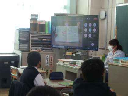 朝の時間に、図書委員会のみなさんによる絵本の読み聞かせが行われました。Teamsを使って行われました。クラスの子どもたちも集中してお話を聞くことができました。