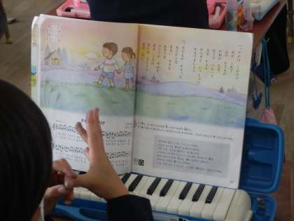 2年生2組では、「♪夕やけこやけ」の歌のテストを行っていました。一人ずつ上手に歌うことができました。